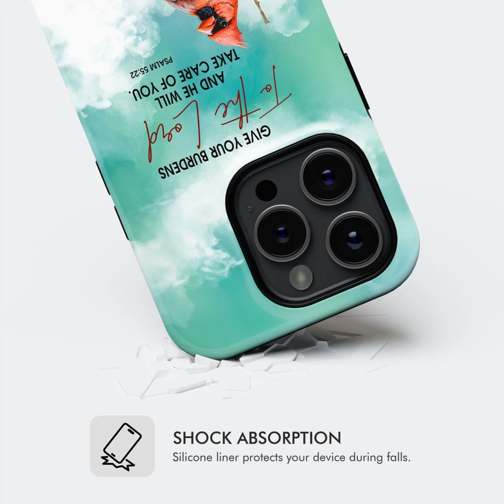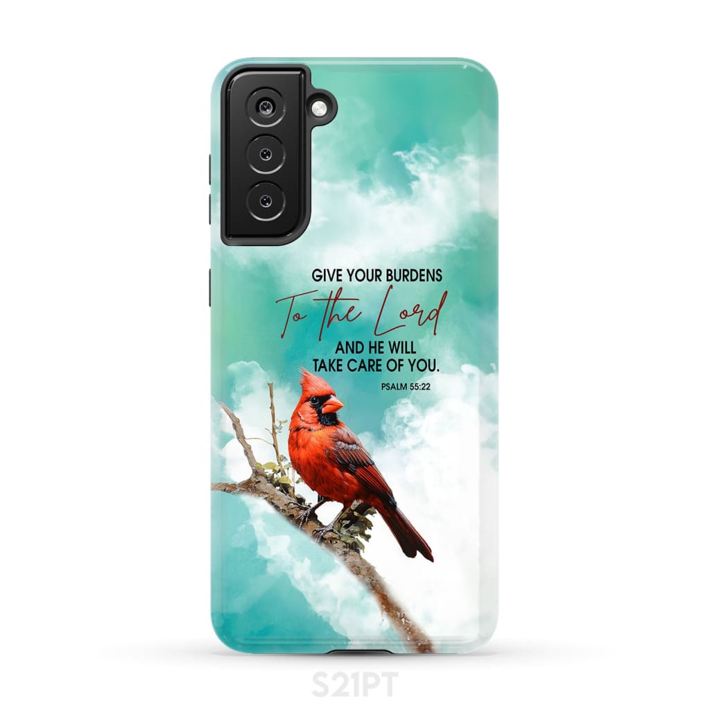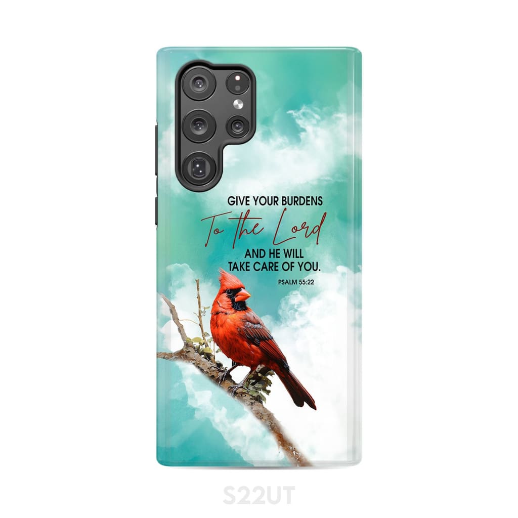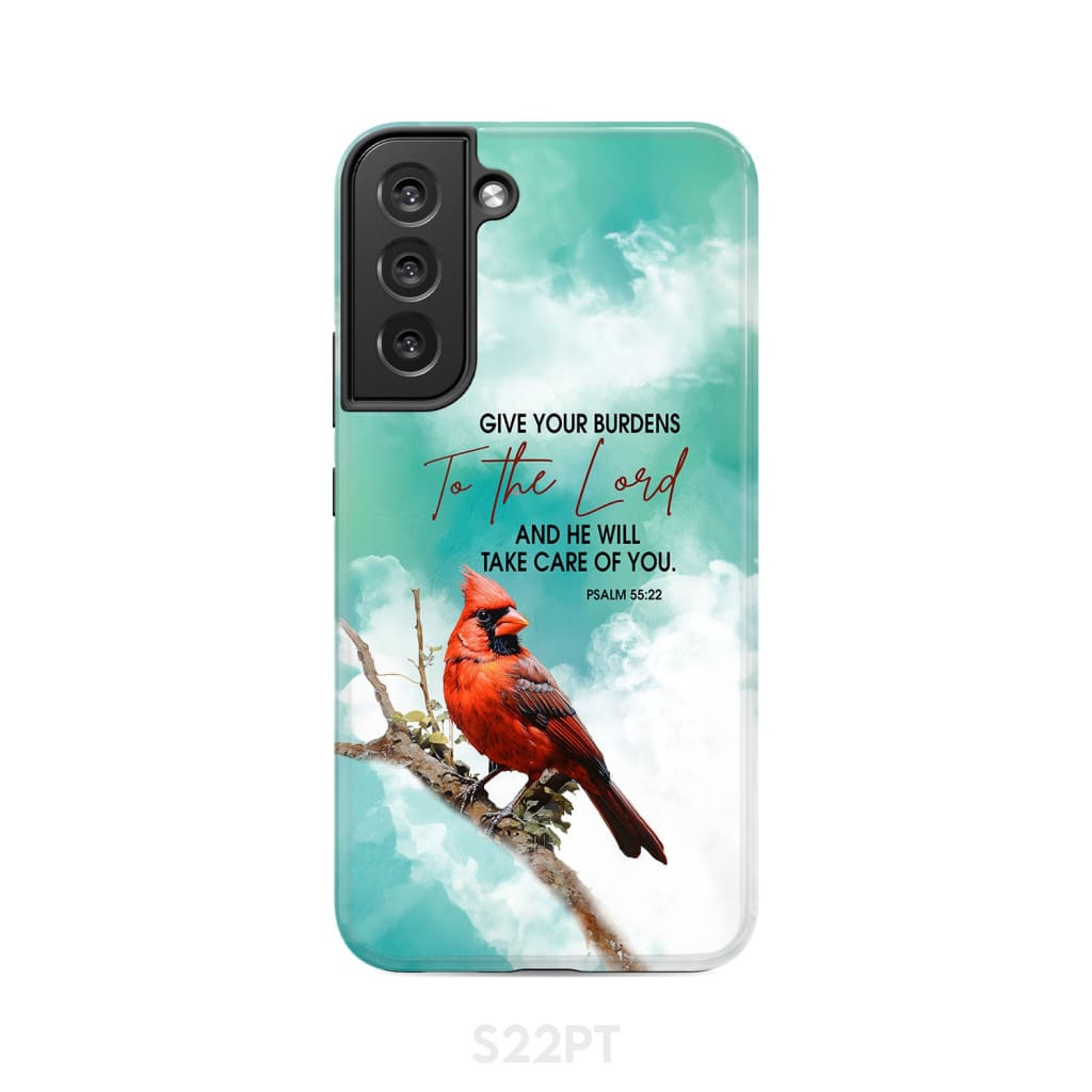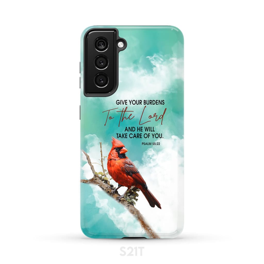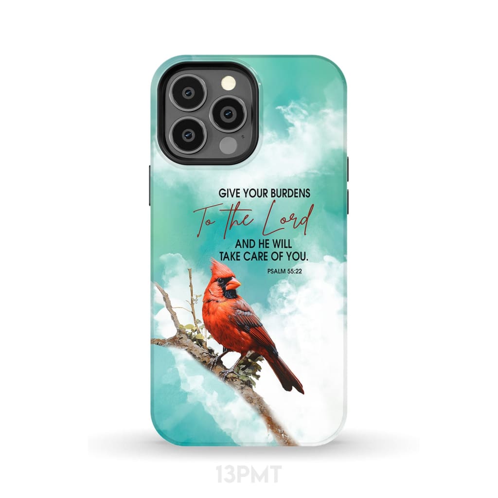 Give Your Burdens to the Lord Psalm 55:22, Cardinal Bird, Phone Case