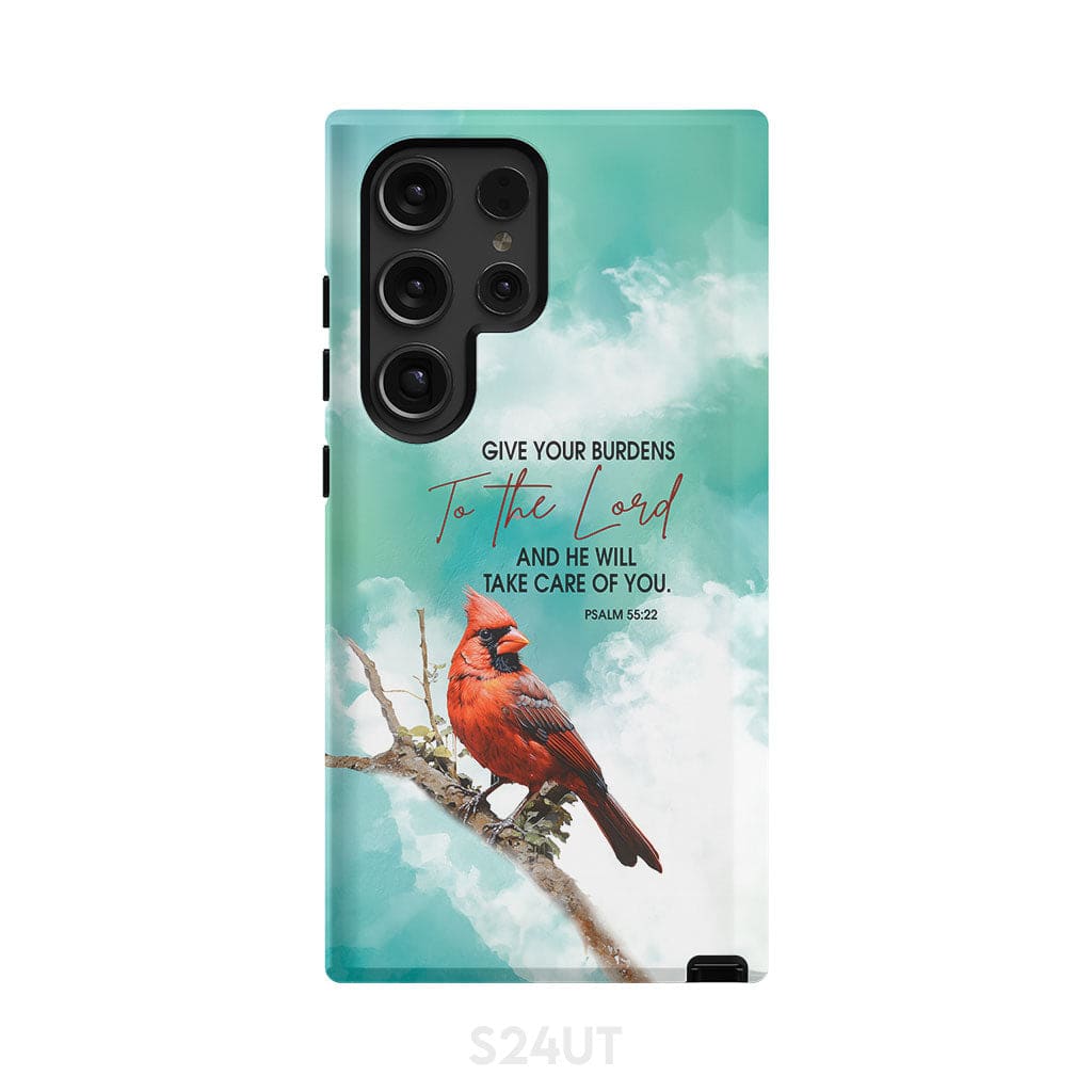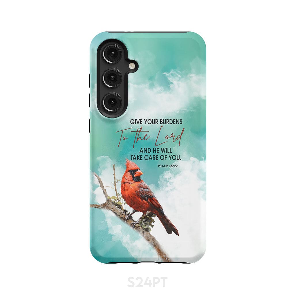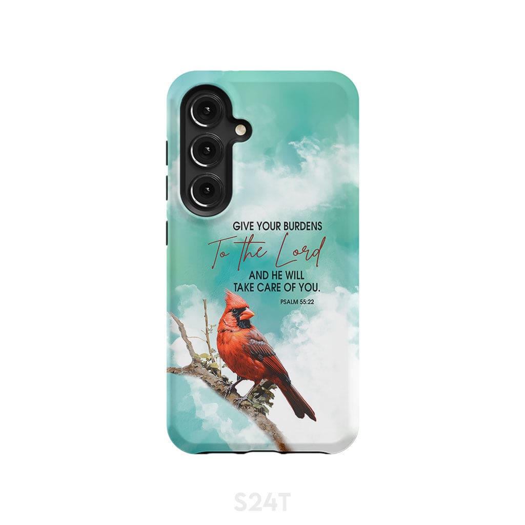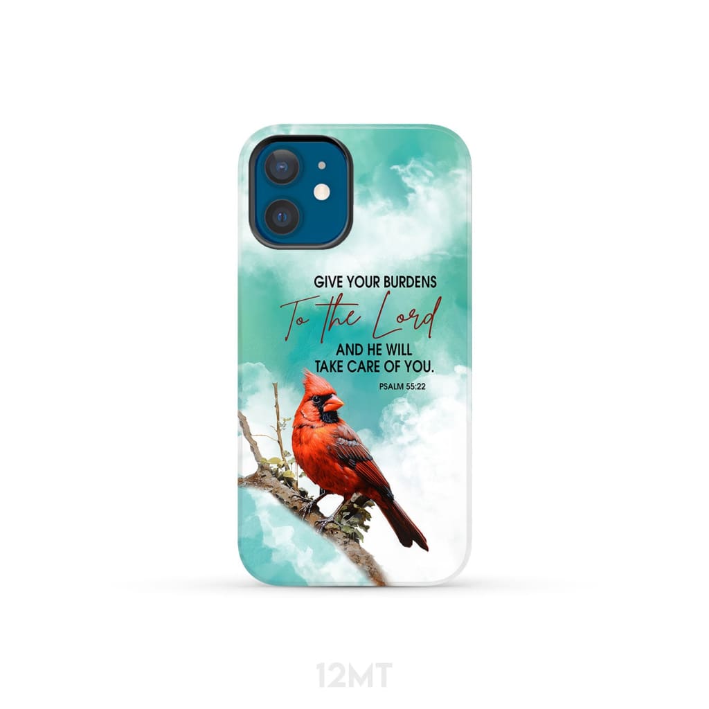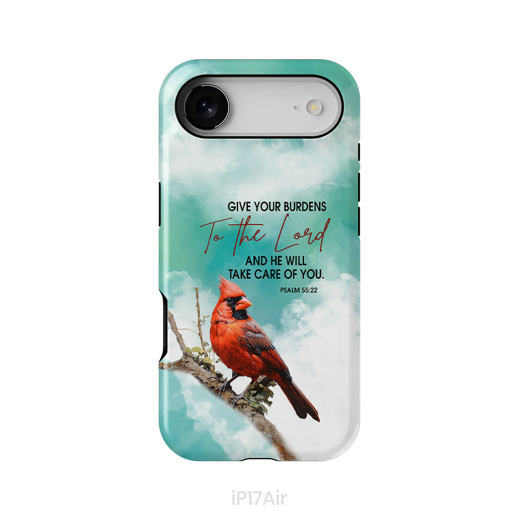 Give Your Burdens to the Lord Psalm 55:22, Cardinal Bird, Phone Case