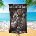 Put On The Armor Of God Pray Devil Runs Warrior Beach Towel - Christian Beach Towel - Bible Verse Beach Towel