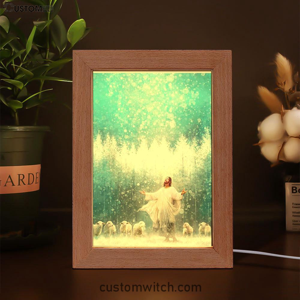 Radiance Jesus And Sheep Frame Lamp Prints - Jesus Christ Frame Lamp Art - Christian Decor