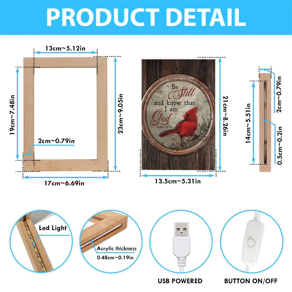 Red Cardinal Be Still And Know That I Am God Frame Lamp - Christian Art - Religious Home Decor