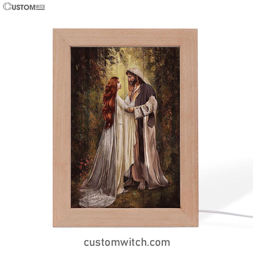 Red Head Women And Jesus In A Beautiful Forest Frame Lamp - Christian Art - Religious Home Decor