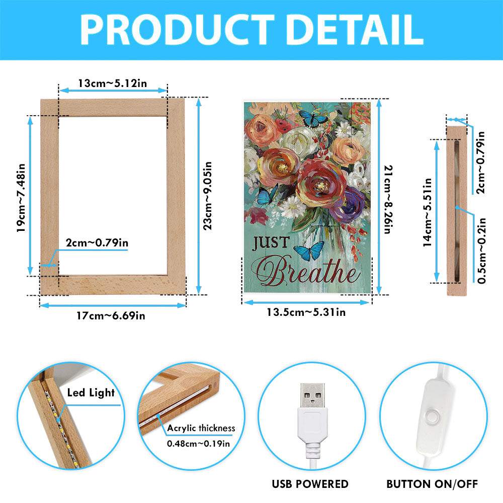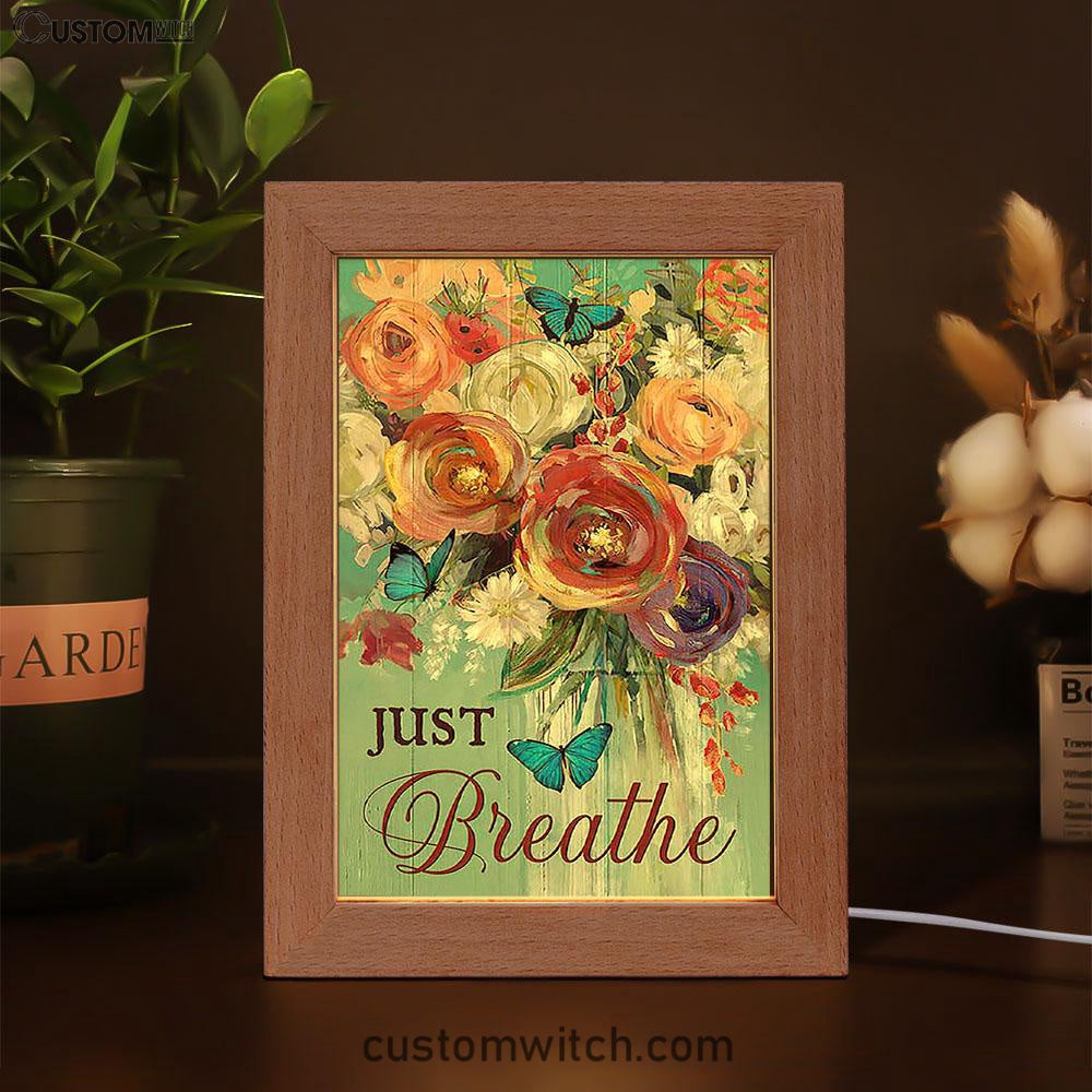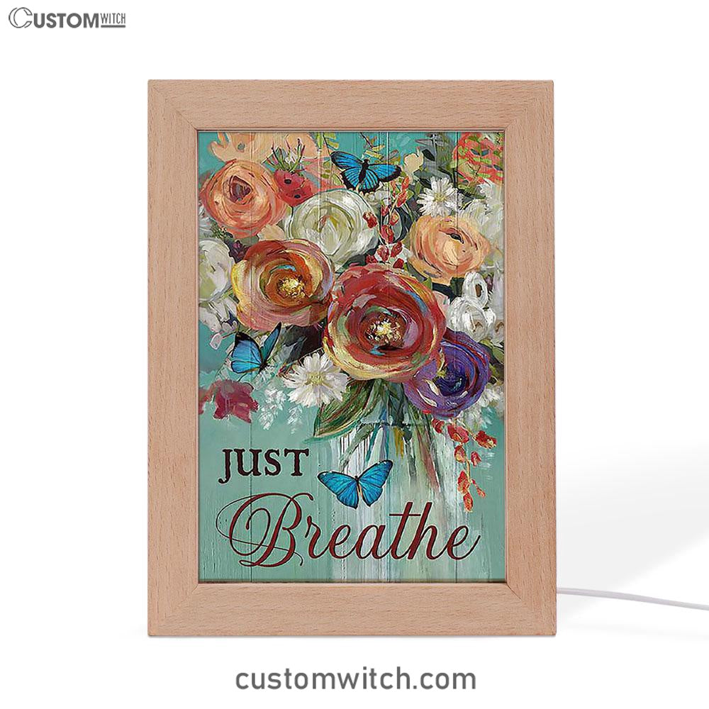 Red Rose Just Breathe Frame Lamp - Christian Art - Religious Home Decor