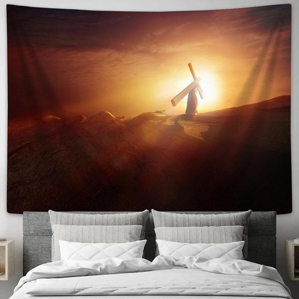 Resurrection Jesus Carrying Cross Tapestry Pictures - Faith Art - Christian Tapestry Wall Art Decor