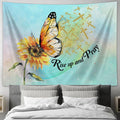 Rise Up And Pray Butterfly Sunflower Tapestry Wall Art - Christian Wall Decor