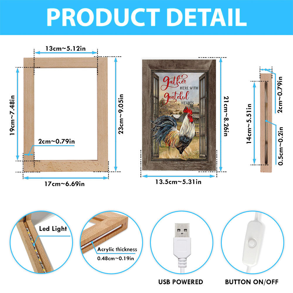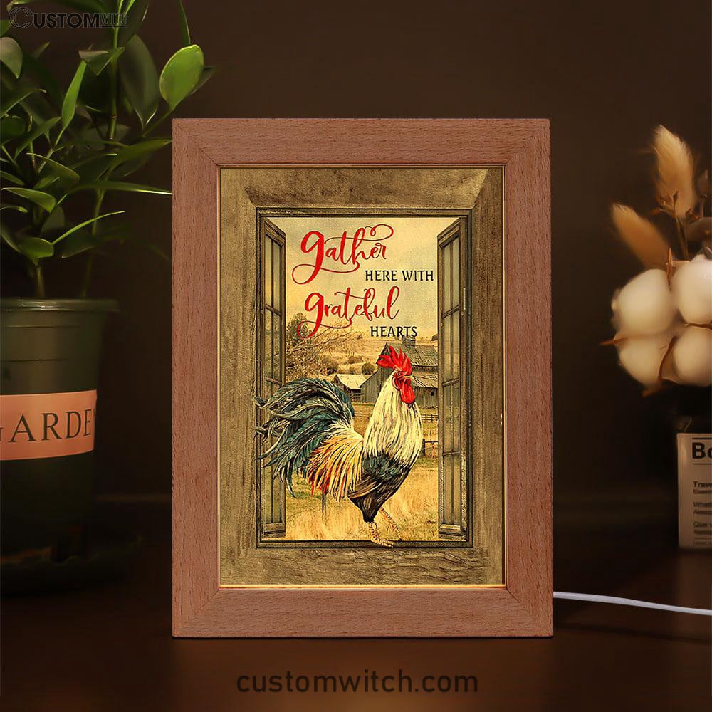 Rooster Chicken Gather Here With Grateful Hearts Frame Lamp Print - Inspirational Frame Lamp Art - Christian Art Home Decor