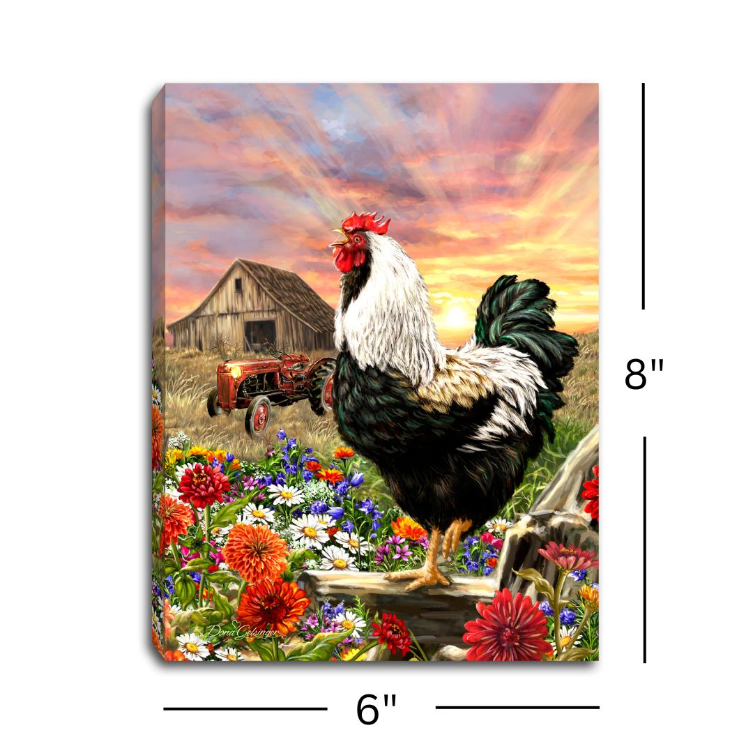 Rooster Crow 8x6 Lighted Tabletop Canvas