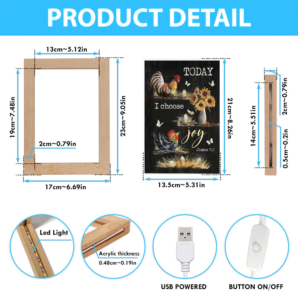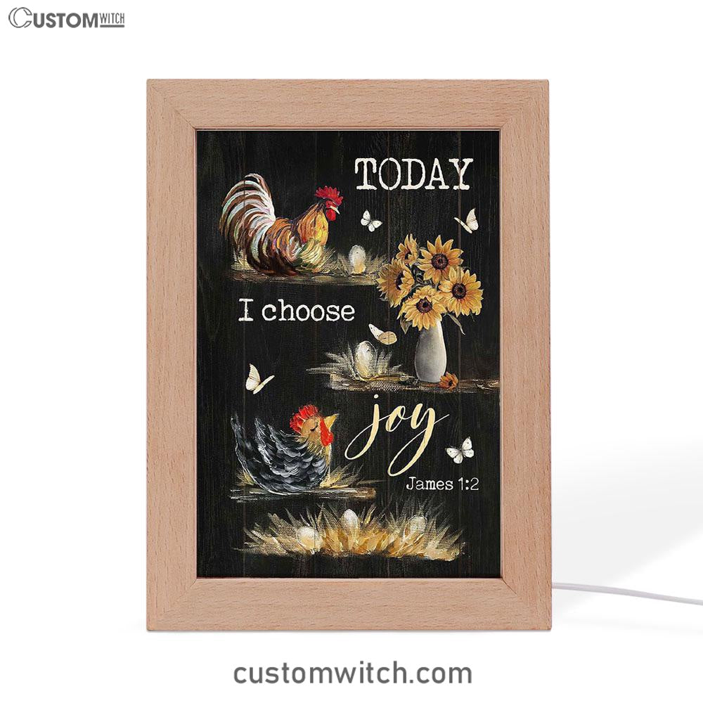 Rooster Sunflower Vase Black Background Today I Choose Joy Frame Lamp Art - Christian Art - Bible Verse Art - Religious Home Decor