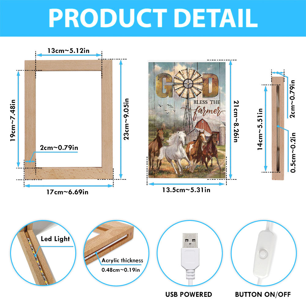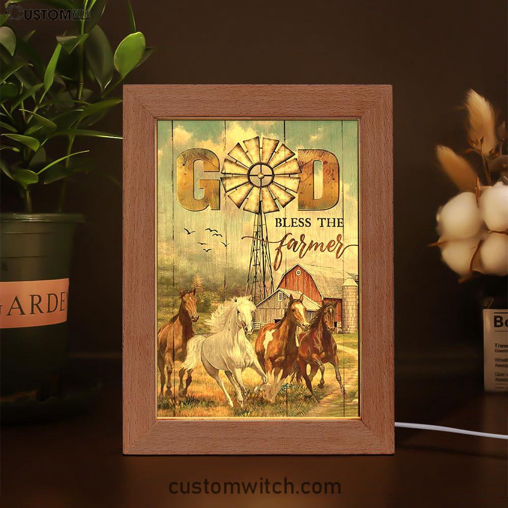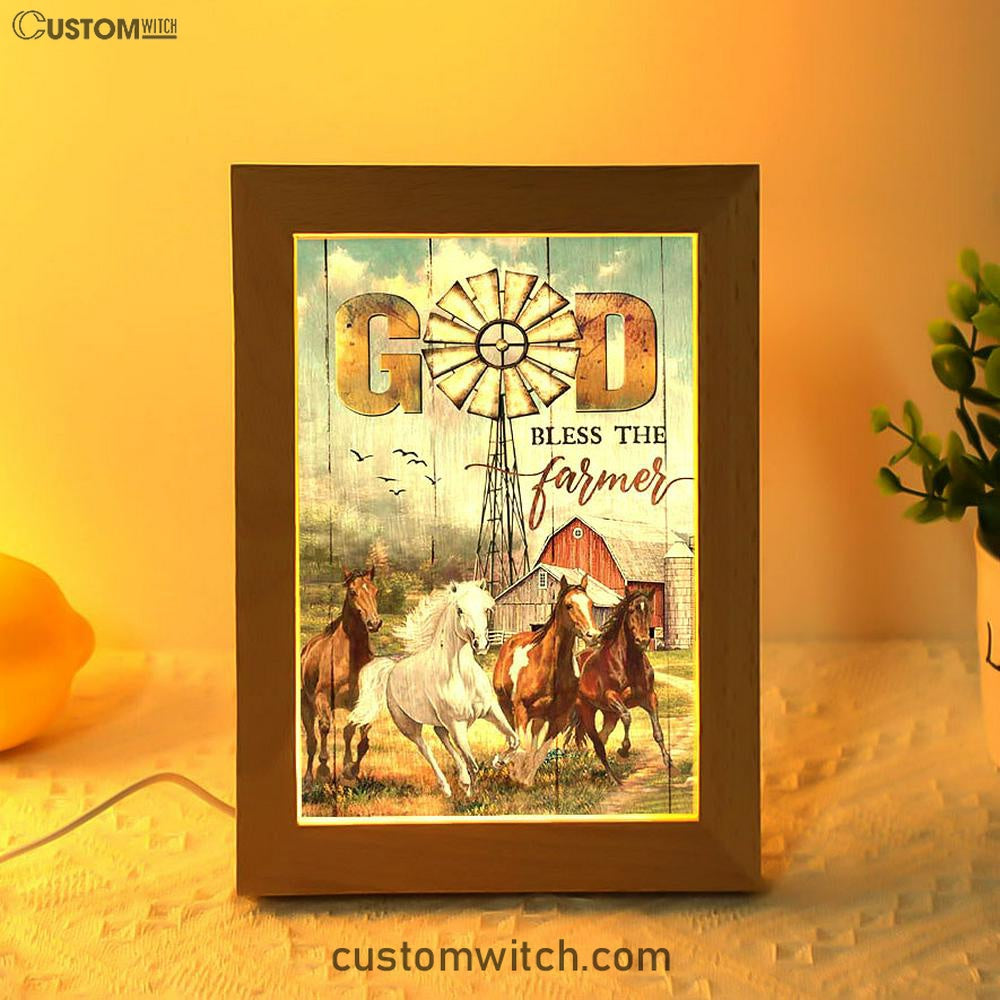 Running Horses God Bless The Farmer Frame Lamp Print - Inspirational Frame Lamp Art - Christian Art Home Decor