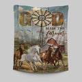Running Horses God Bless The Farmer Tapestry Print - Inspirational Tapestry Art - Christian Wall Art Home Decor