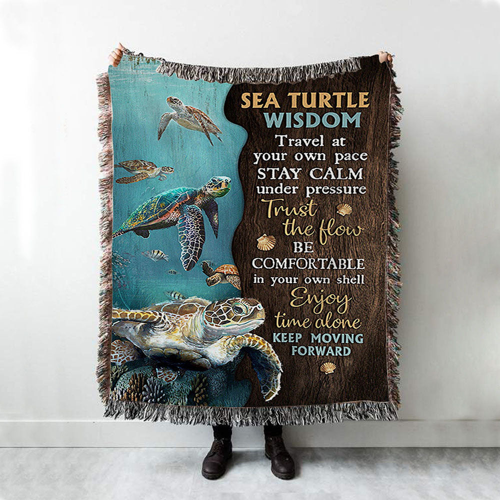 Sea Turtle Keep Moving Forward Woven Blanket Print - Inspirational Woven Blanket Art - Christian Throw Blanket Home Decor