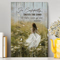 She Confidently Trusts The Lord To Take Care Of Her Green Flower Field White Butterfly Canvas Wall Art - Christian Canvas Prints