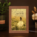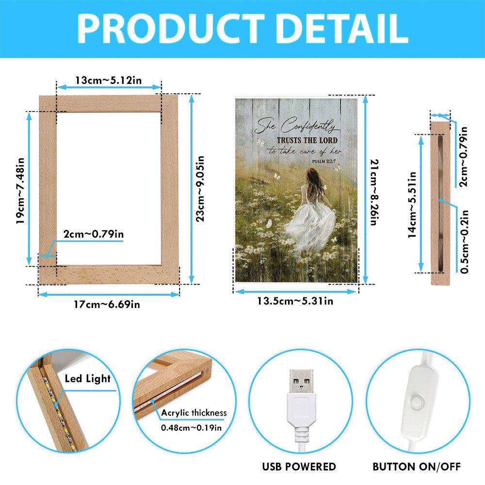 She Confidently Trusts The Lord To Take Care Of Her Green Flower Field White Butterfly Frame Lamp Art - Christian Night Light