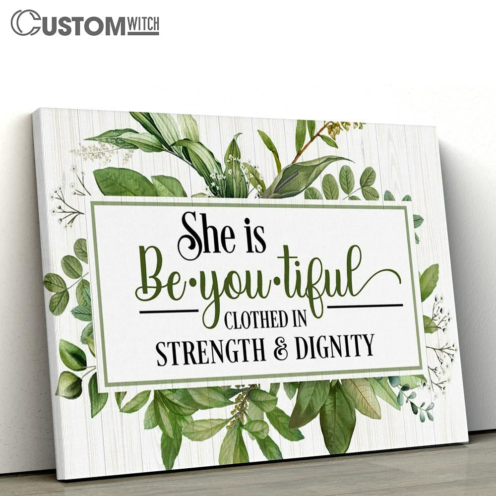 She Is Beyoutiful Clothed In Strength & Dignity Canvas Art - Scripture Canvas Prints - Christian Wall Art
