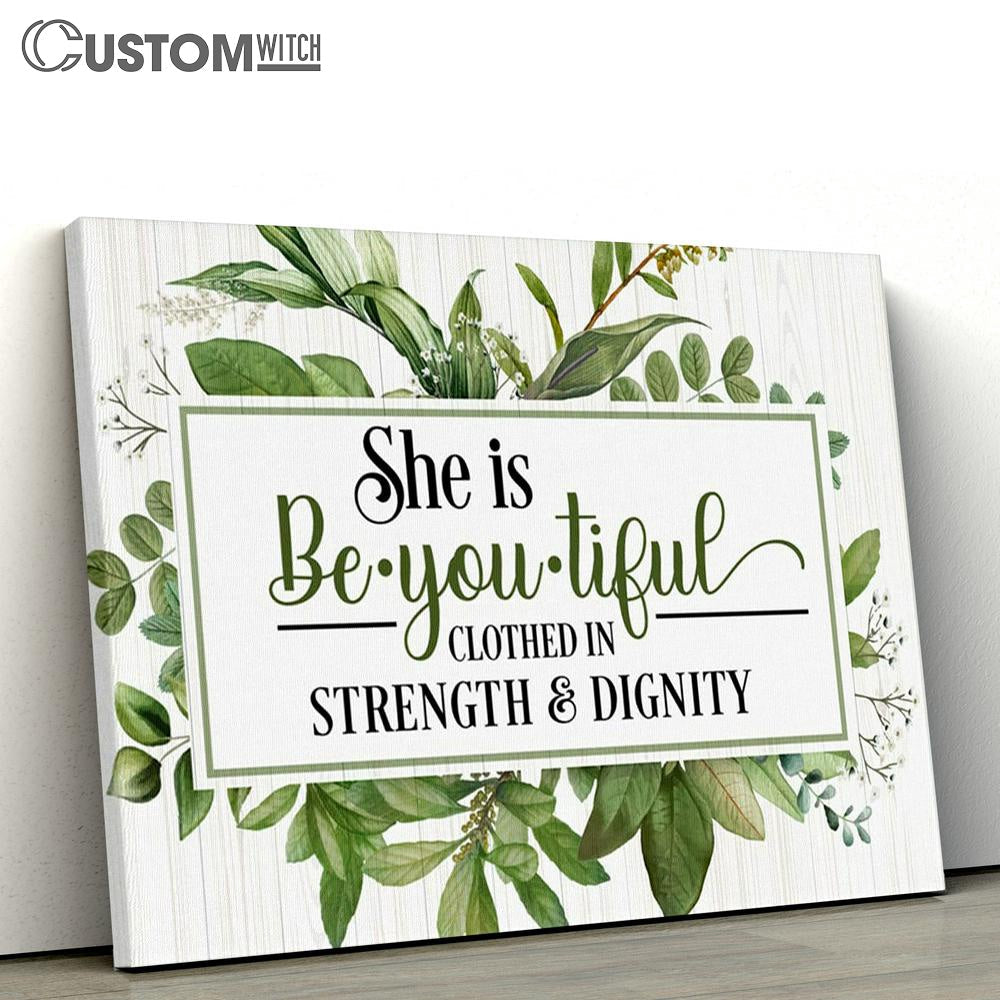 She Is Beyoutiful Clothed In Strength & Dignity Wall Art Canvas - Christian Wall Art Decor - Scripture Canvas Prints