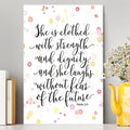 She Is Clothed With Strength And Dignity Canvas Wall Art - Proverbs 31 25 - Scripture Wall Art - Religious Decor