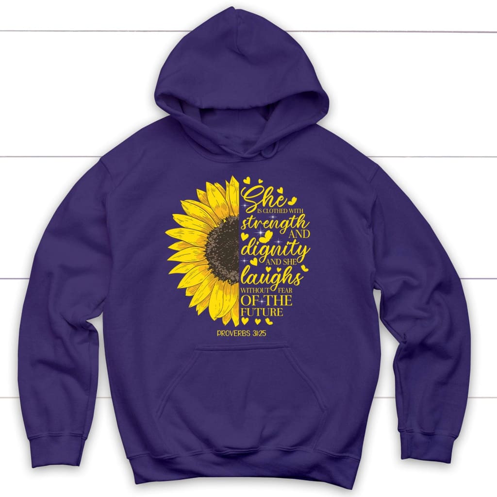 She Is Clothed With Strength And Dignity Proverbs 31:25, Sunflower, Christian Hoodie
