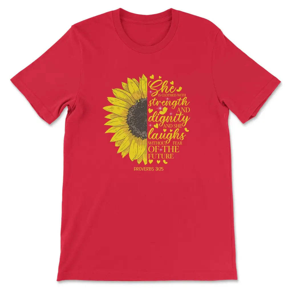 She is Clothed With Strength and Dignity Proverbs 31:25, Sunflower, Christian T-shirt