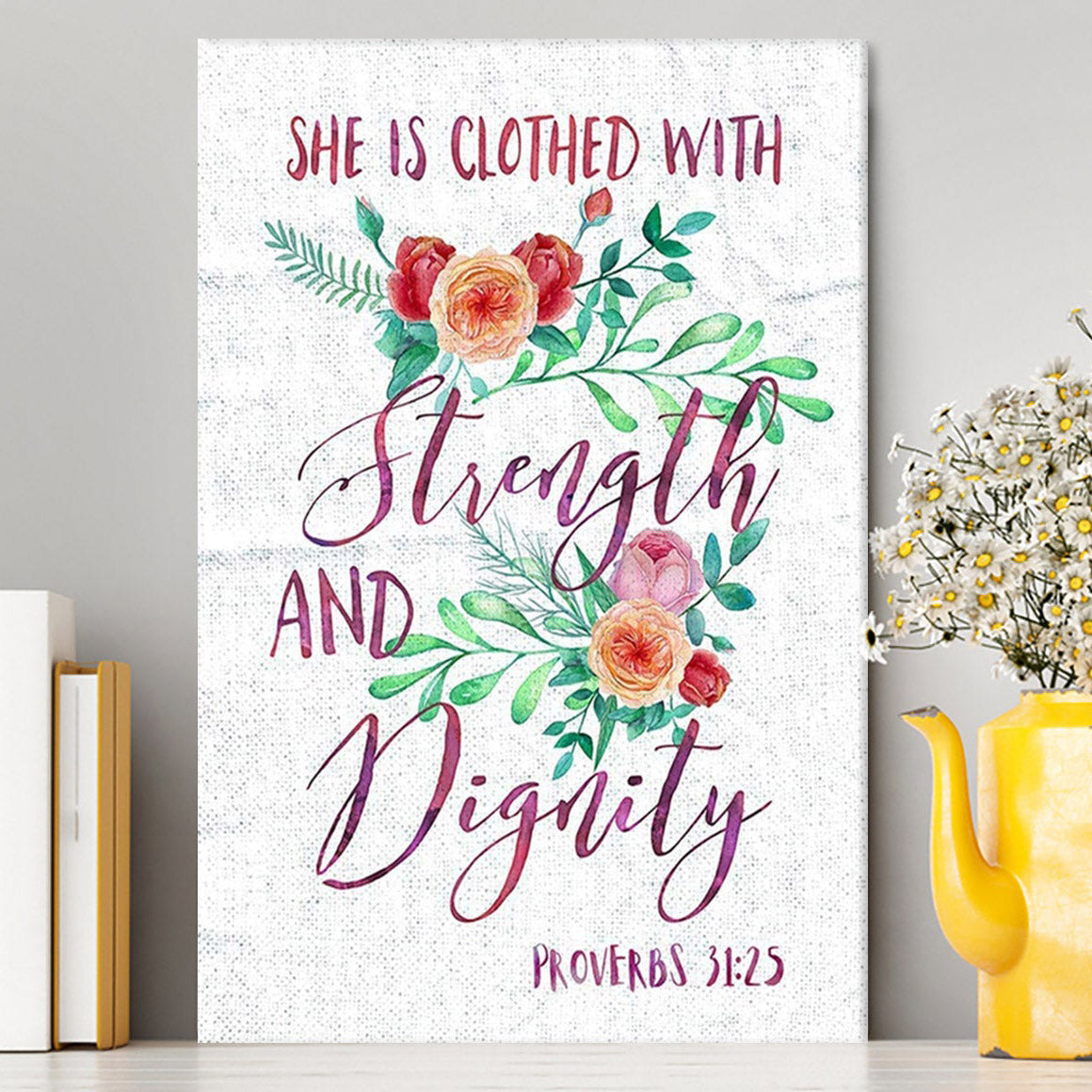 She Is Clothed With Strength And Dignity - Proverbs 31 25 Wall Decor - Bible Verse Wall Art