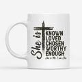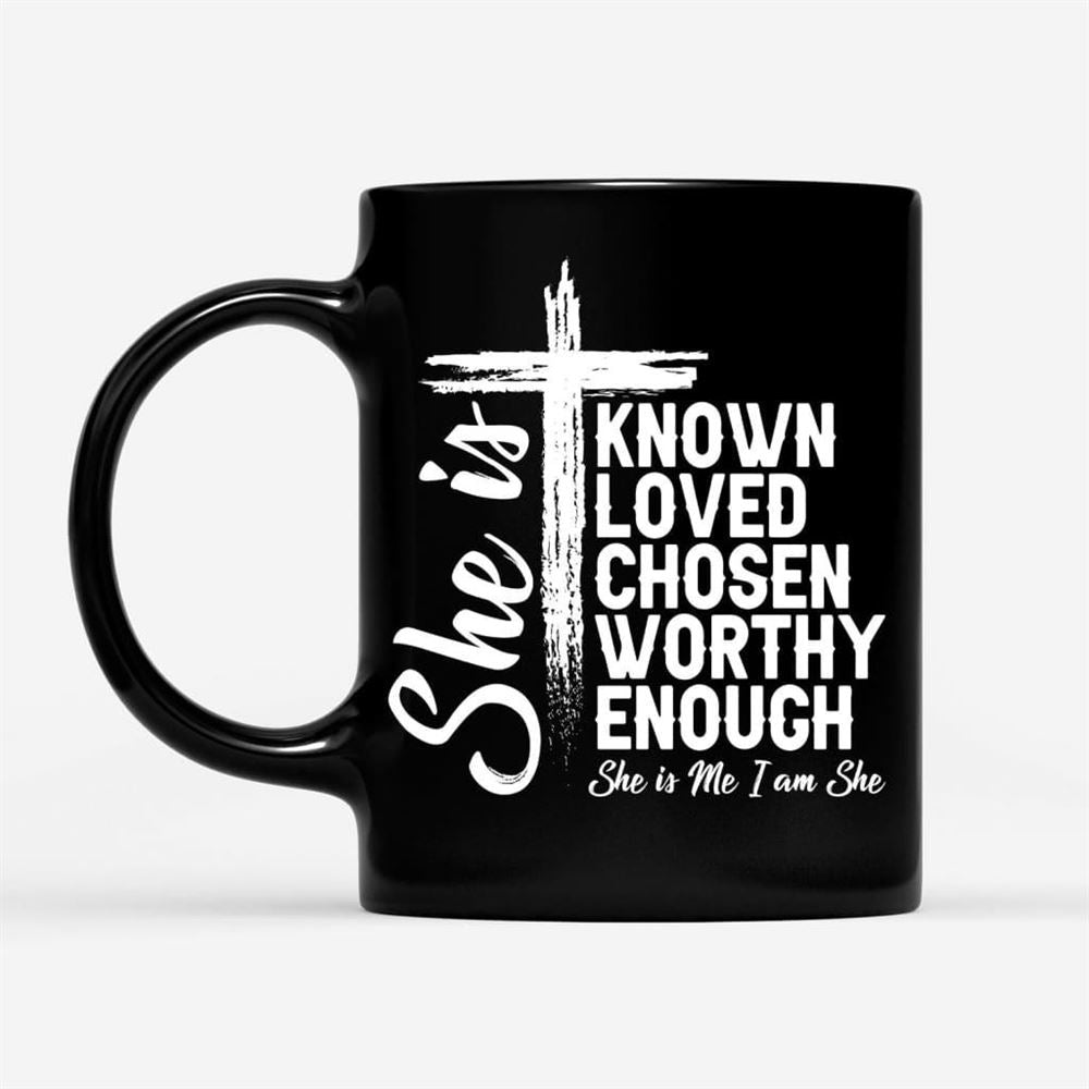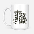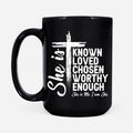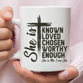 She Is Known Loved Chosen Worthy Enough Coffee Mug, Christian Gifts, Christian Mug, Bible Mug, Faith Gift, Encouragement Gift