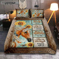 She Is Strong Horse Sunflower Butterfly Quilt Bedding Set Print - Inspirational Quilt Bedding Set Art - Christian Bedroom Home Decor