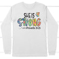 She Is Strong Proverbs 31:25, Butterfly, Christian Long Sleeve Shirt