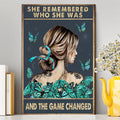She Remembered Who She Was And The Game Changed Canvas - Gifts For Women, Teen Girls - Motivational Wall Art - Light Blue Boho Decoration