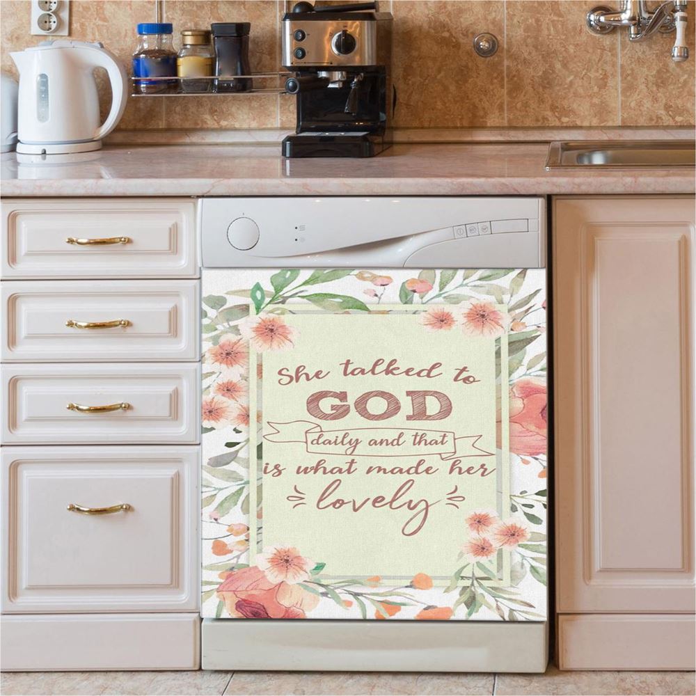She Talked To God Daily And That Is What Made Her Lovely Dishwasher Cover, Bible Verse Dishwasher Wrap, Scripture Kitchen Decoration