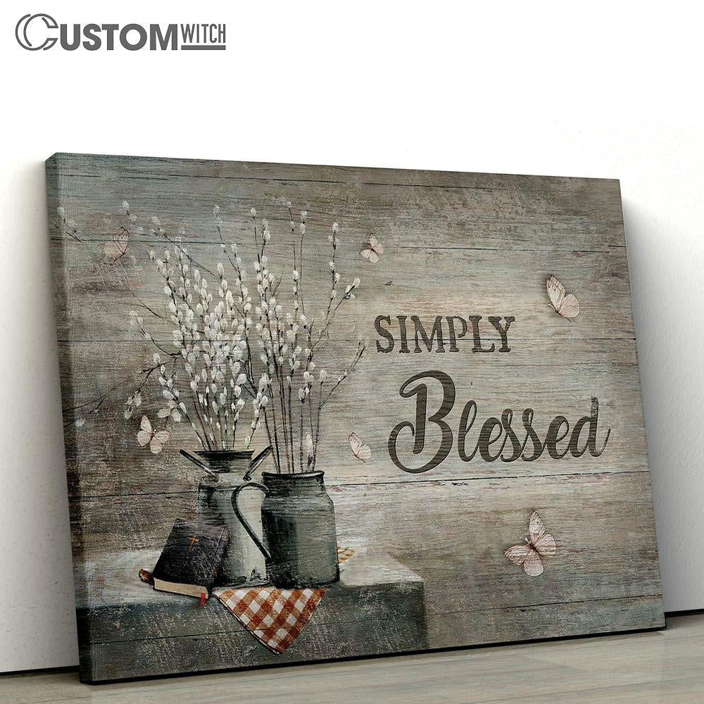 Simply Blessed Baby Flower Vase Bible White Butterfly Canvas Wall Art - Bible Verse Canvas - Religious Prints