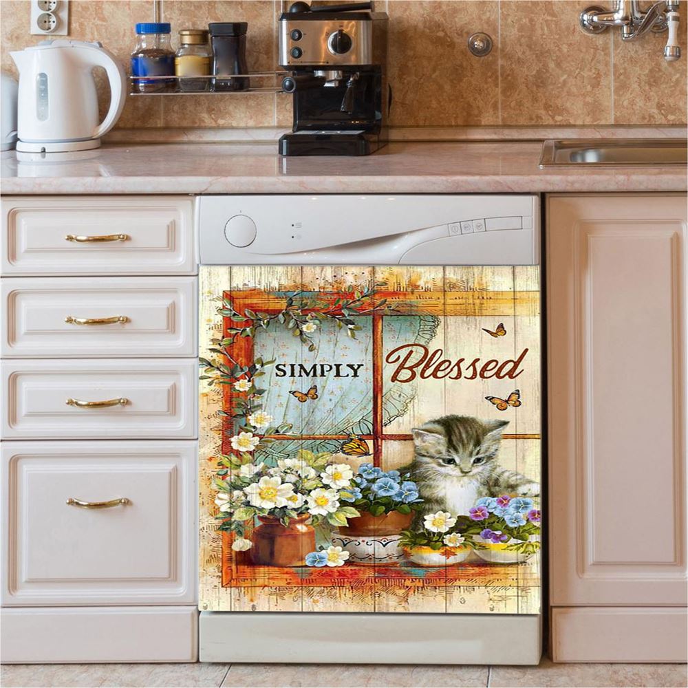 Simply Blessed Cat Butterfly Dishwasher Cover, Inspirational Dishwasher Wrap, Christian Kitchen Decoration