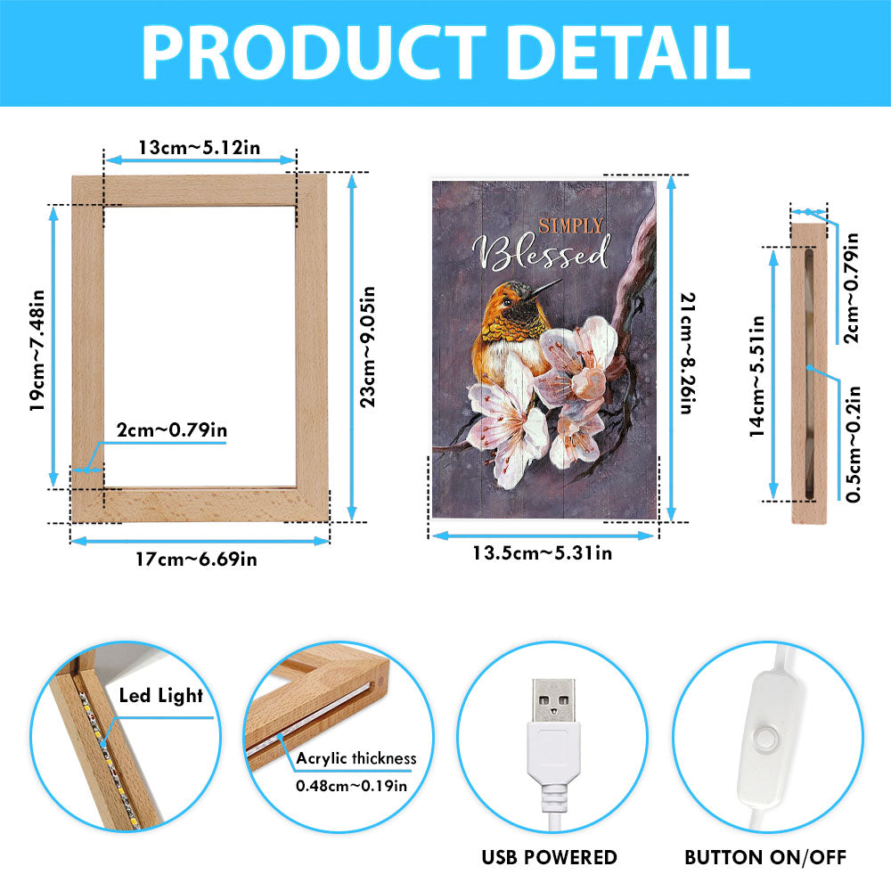 Simply Blessed Flower Yellow Hummingbird Frame Lamp Art - Bible Verse Wooden Lamp - Inspirational Art - Christian Home Decor