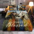 Simply Blessed Horse Couple Quilt Bedding Set Print - Inspirational Quilt Bedding Set Art - Christian Bedroom Home Decor