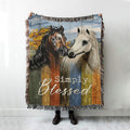 Simply Blessed Horse Couple Woven Blanket Print - Inspirational Woven Blanket Art - Christian Throw Blanket Home Decor