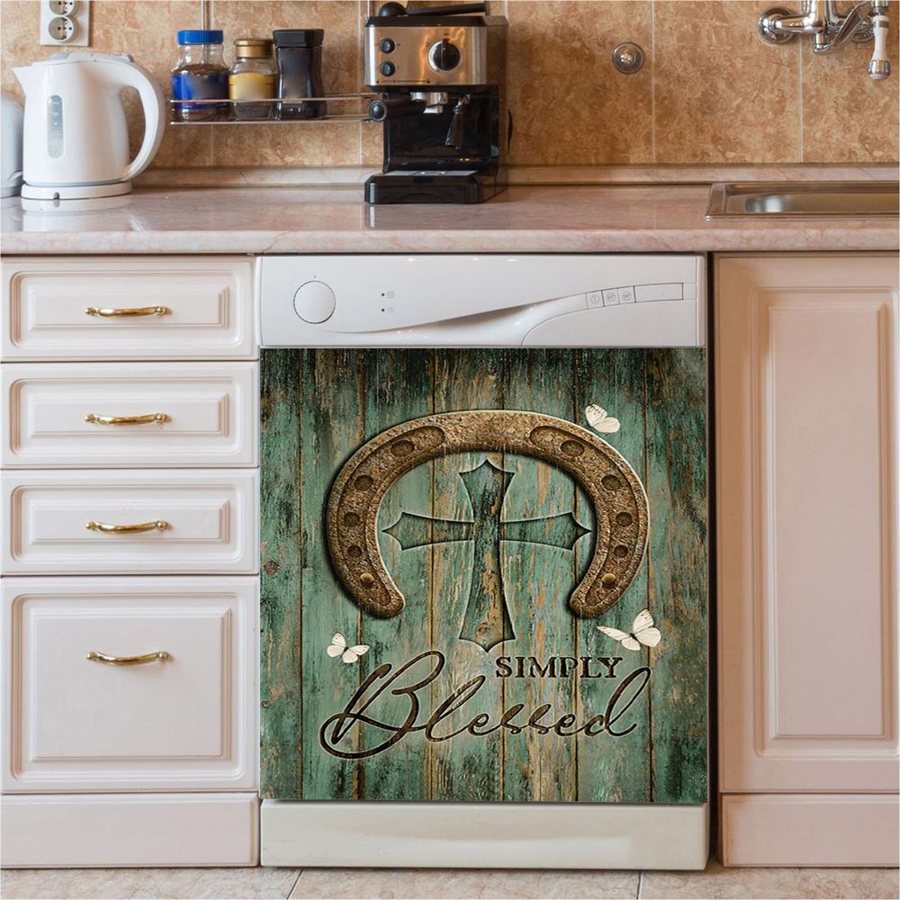 Simply Blessed Horse German Shepherd Dishwasher Cover, Inspirational Dishwasher Wrap, Christian Kitchen Decoration