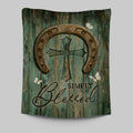 Simply Blessed Horseshoe Cross White Butterfly Tapestry Wall Art - Christian Tapestries Prints - Bible Verse Tapestry Art