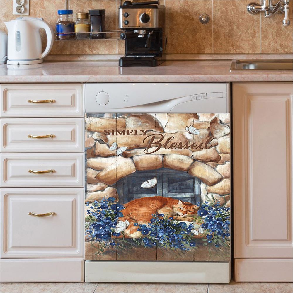 Simply Blessed Room Sleeping Cat Flower Dishwasher Cover, Inspirational Dishwasher Wrap, Christian Kitchen Decoration