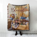 Simply Blessed Room Sleeping Cat Flower Woven Blanket Print - Inspirational Woven Blanket Art - Christian Throw Blanket Home Decor