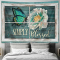 Simply Blessed Tapestry Wall Art - Butterfly Camellia Flower Christian Art - - Christian Wall Decor