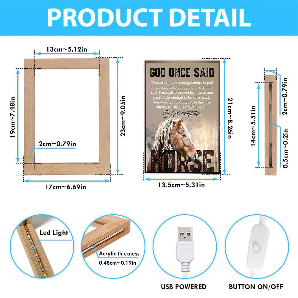 So God Created The Horse Frame Lamp Art - Perfect Gift For Vets & Horse Lovers! - Christian Night Light Decor