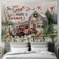 So God Made A Farmer Red Cardinal Old Truck Wooden Cross Tapestry Art - Bible Verse Wall Art - Wall Decor Christian