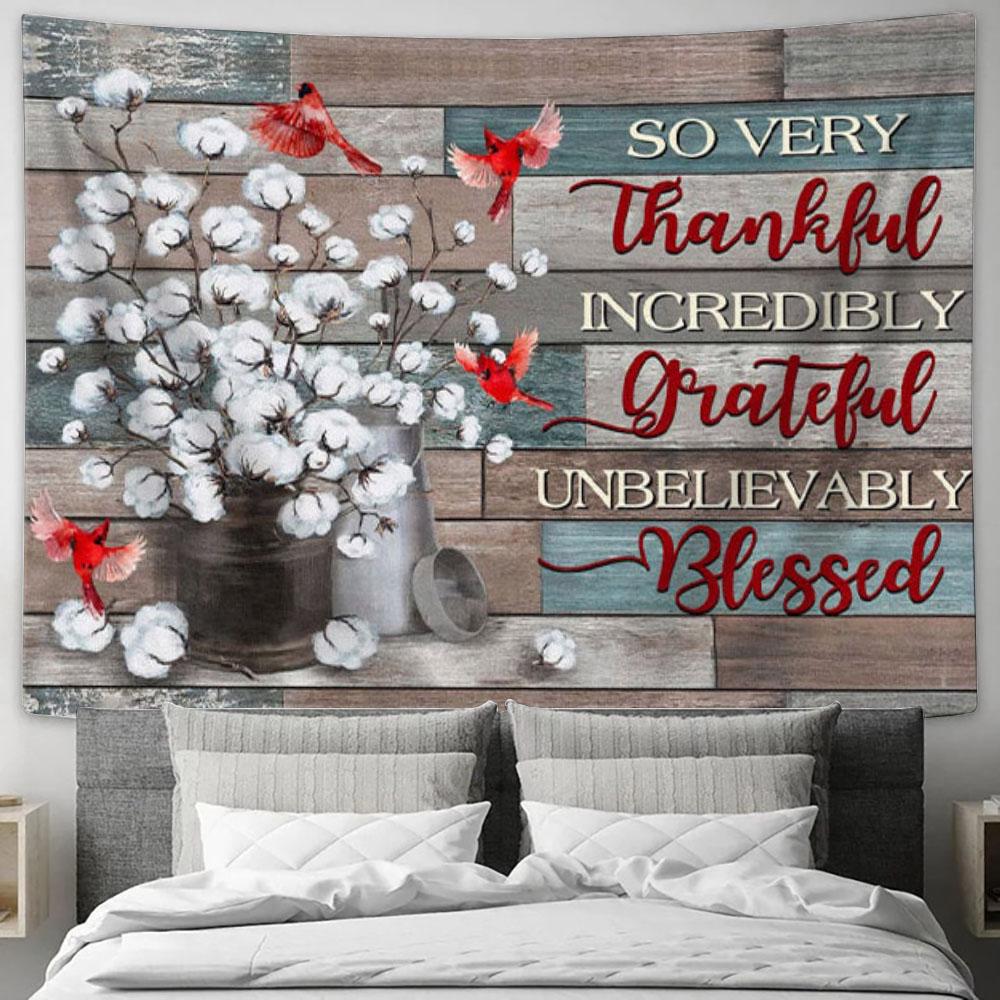 So Very Thankful Incredibly Grateful Unbelievably Blessed - Cardinal Cotton Flower - Tapestry Wall Art - Christian Wall Decor