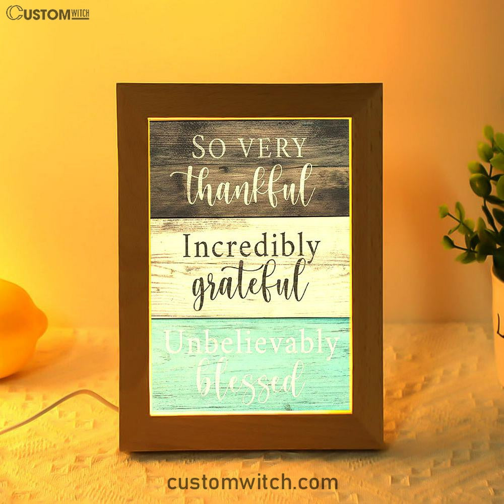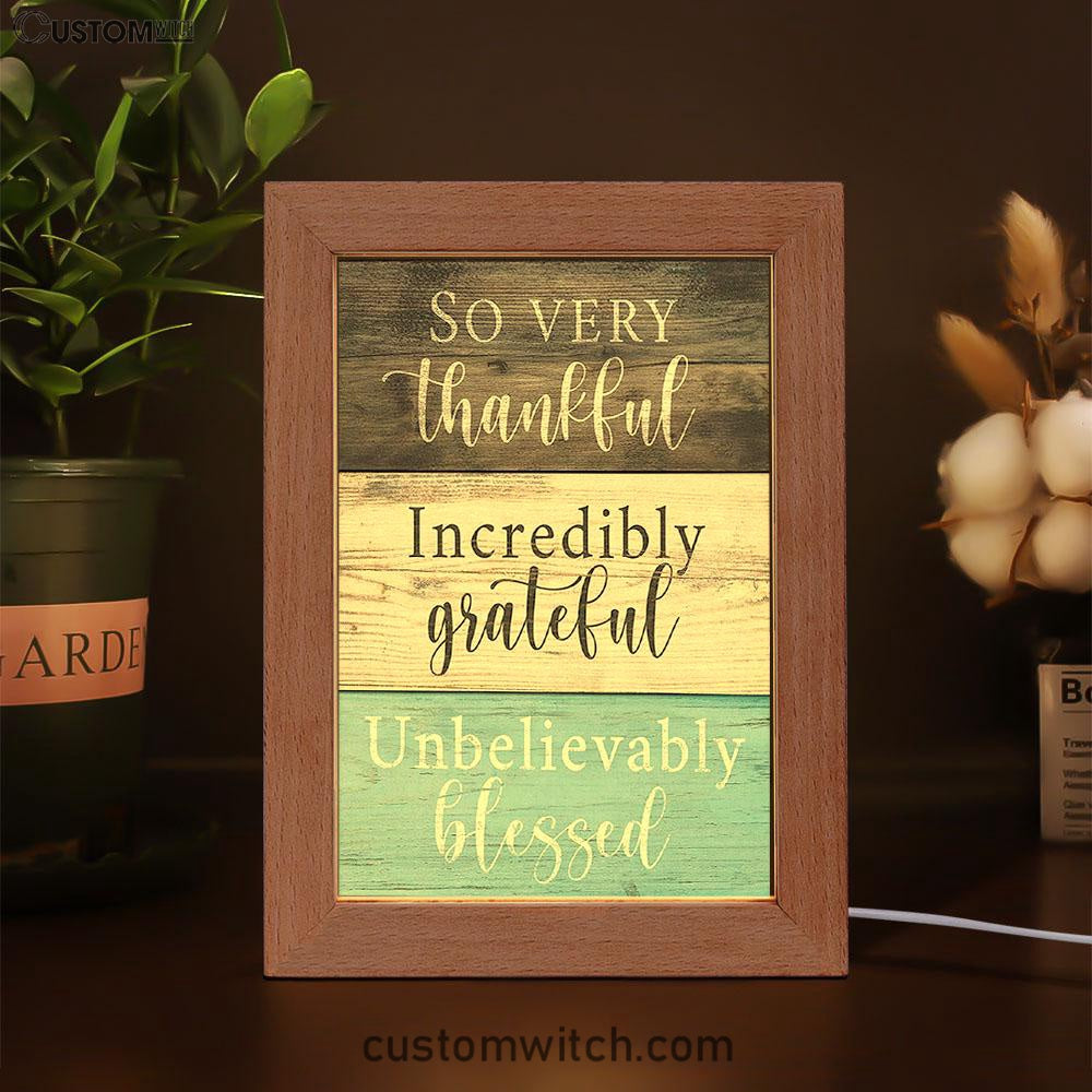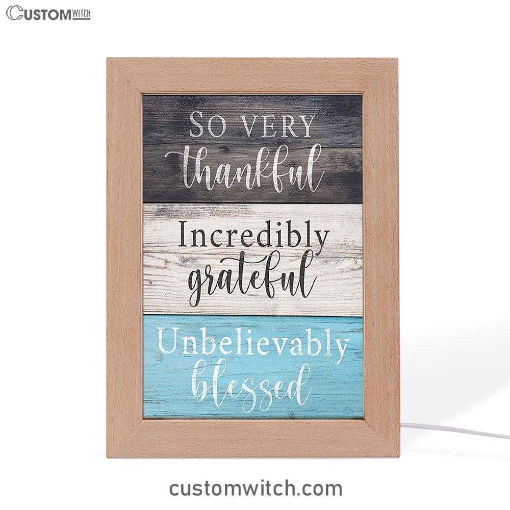 So Very Thankful Incredibly Grateful Unbelievably Blessed Frame Lamp Art - Christian Night Light Decor