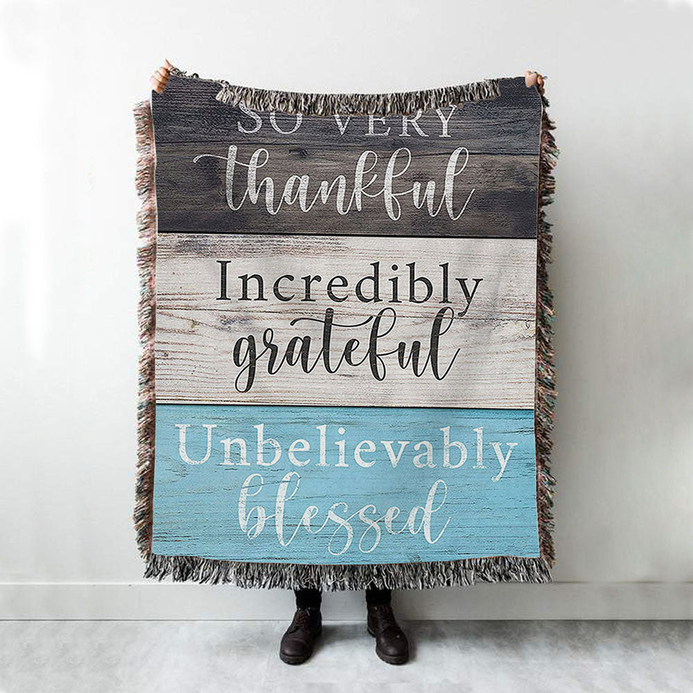 So Very Thankful Incredibly Grateful Unbelievably Blessed Woven Throw Blanket - Christian Woven Throw Blanket Decor