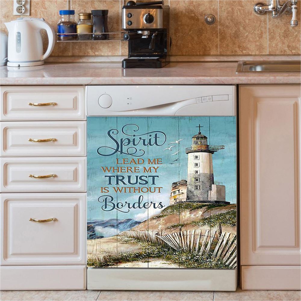Spirit Lead Me Where My Trust Is Without Borders Lighthouse Dishwasher Cover, Inspirational Dishwasher Wrap, Christian Kitchen Decoration