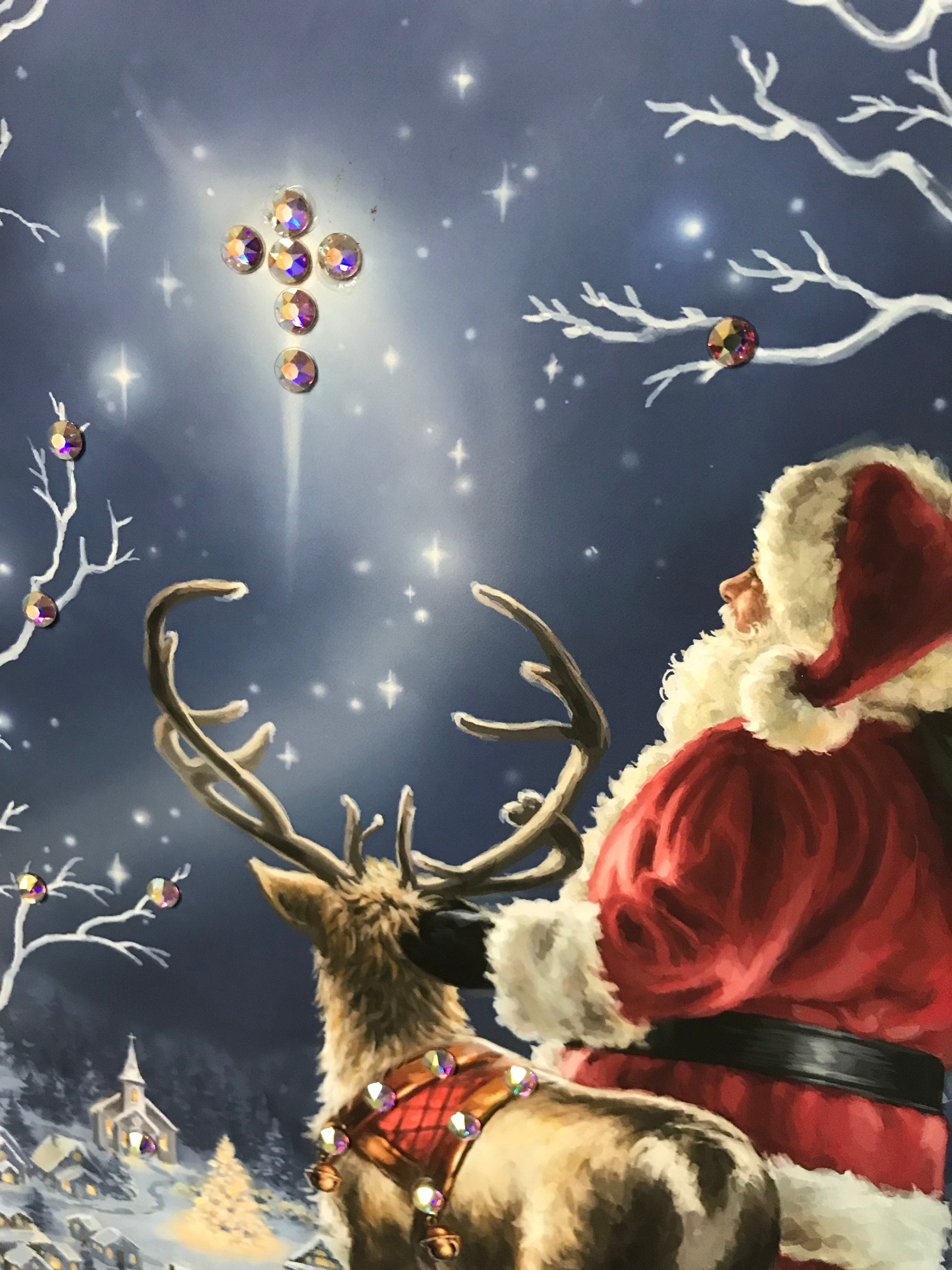 Starry Night Santa Pizazz Print with Dazzling Crystals
