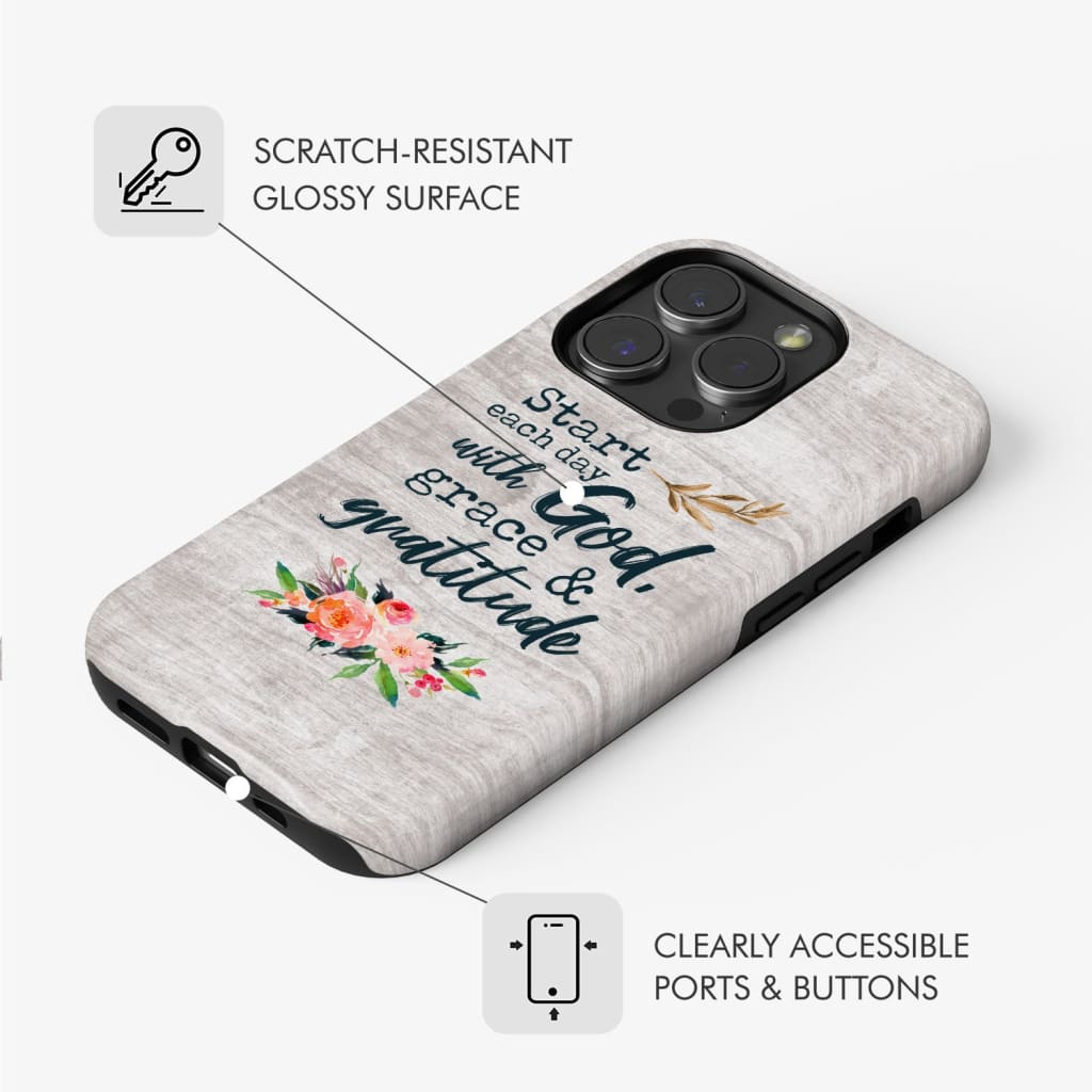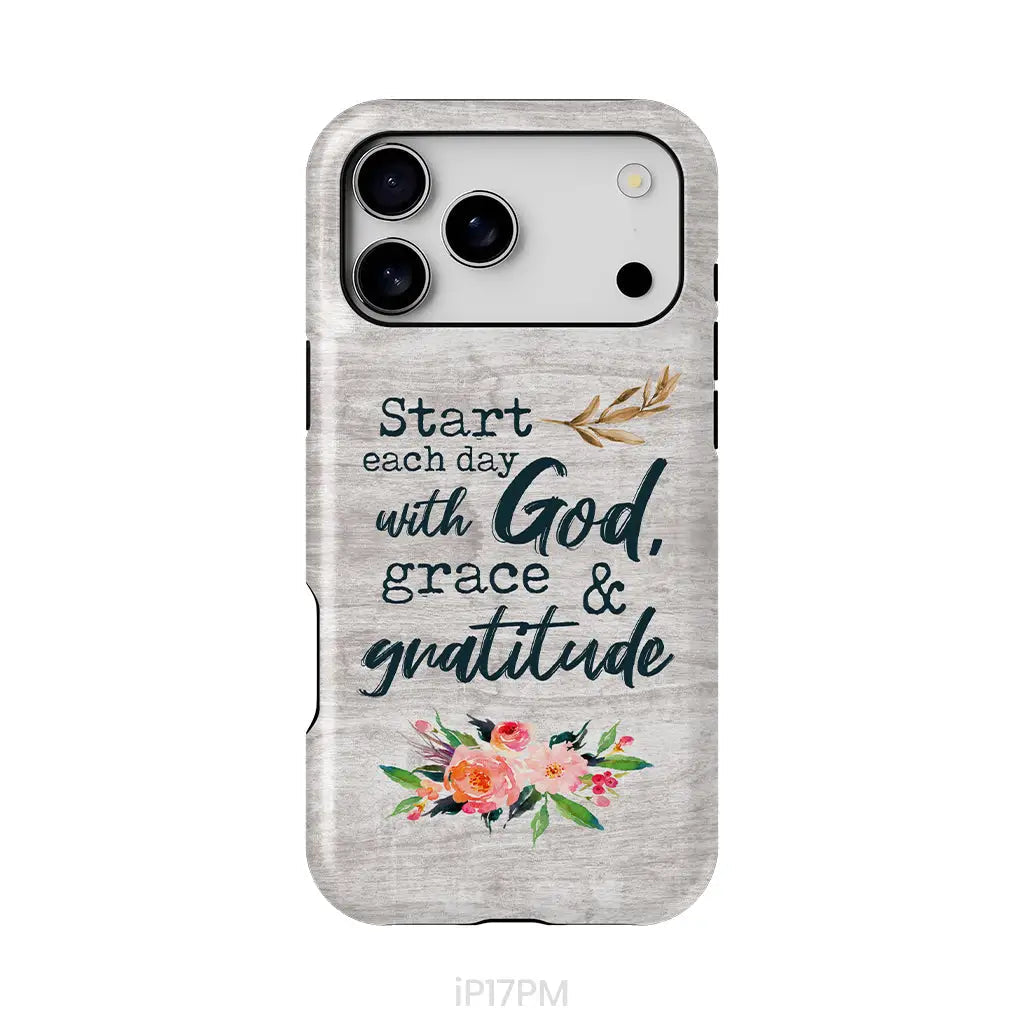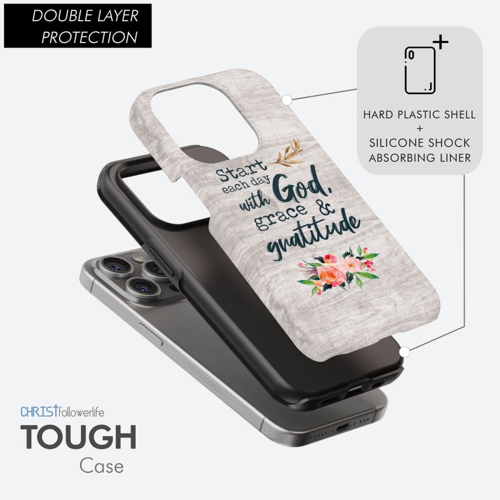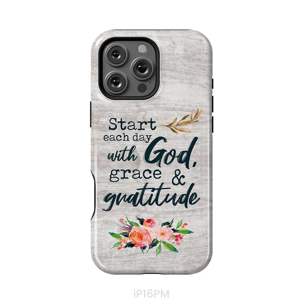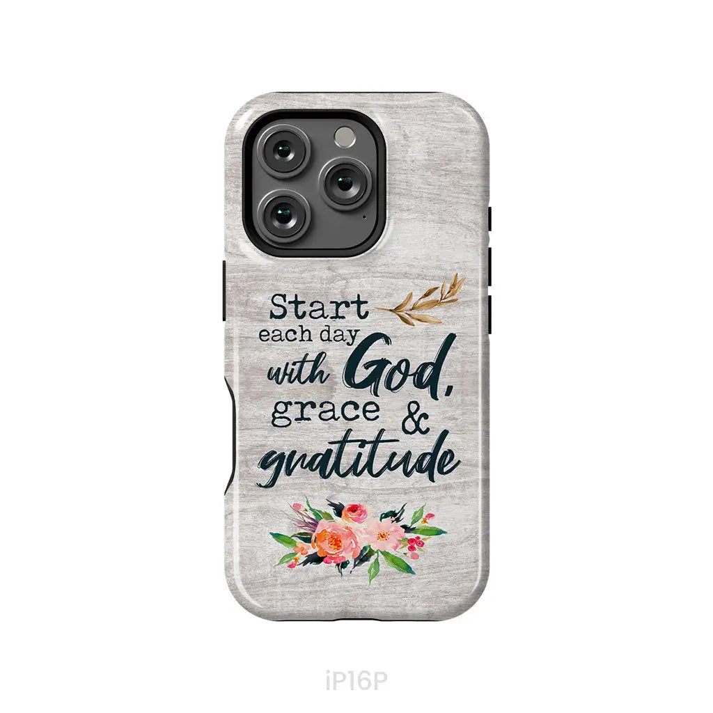 Start Each Day With God Grace And Gratitude Phone Case, Christian Phone Case