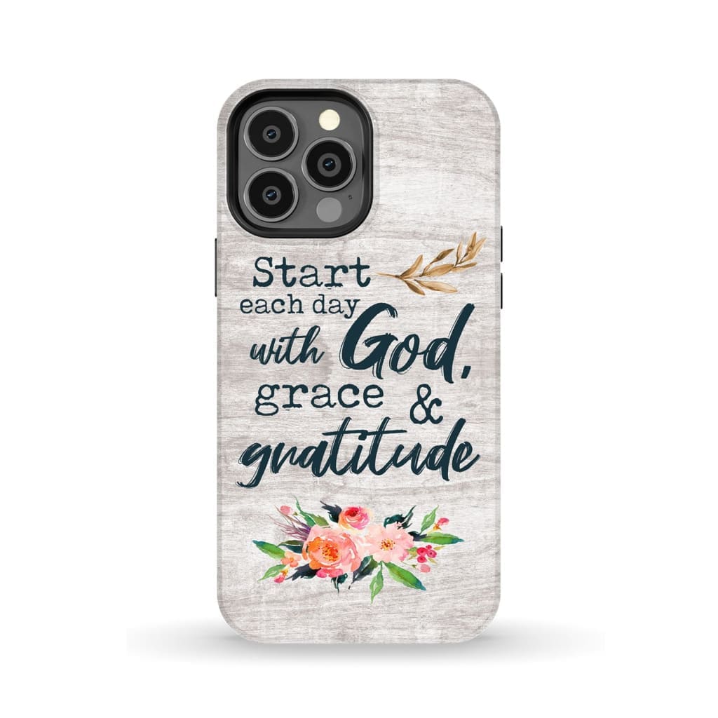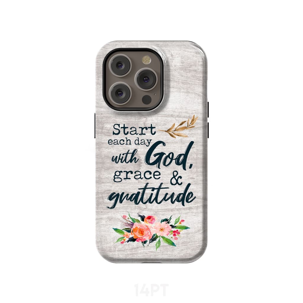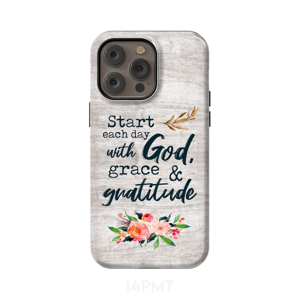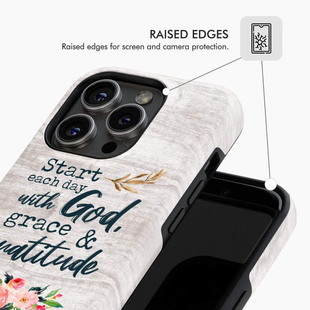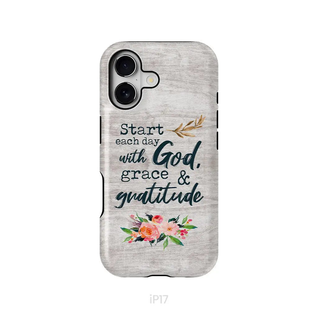 Start Each Day With God Grace And Gratitude Phone Case, Christian Phone Case