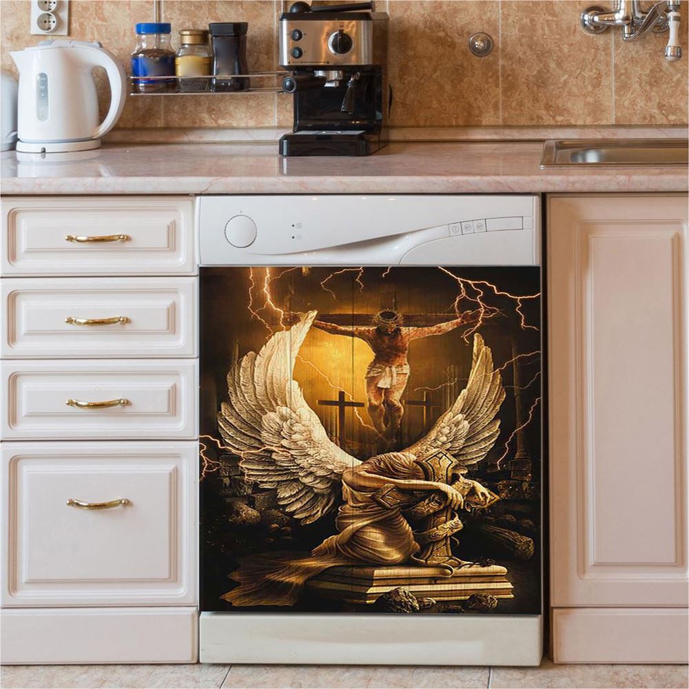 Stunning Angel Wings Jesus On The Cross Dishwasher Cover, Inspirational Dishwasher Wrap, Christian Kitchen Decoration