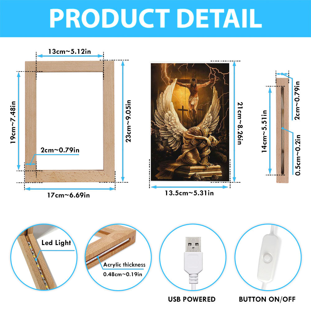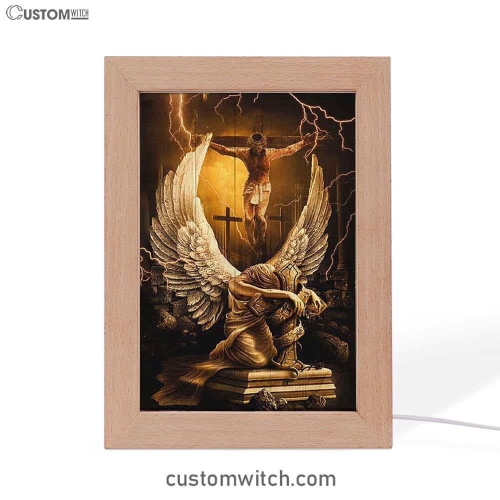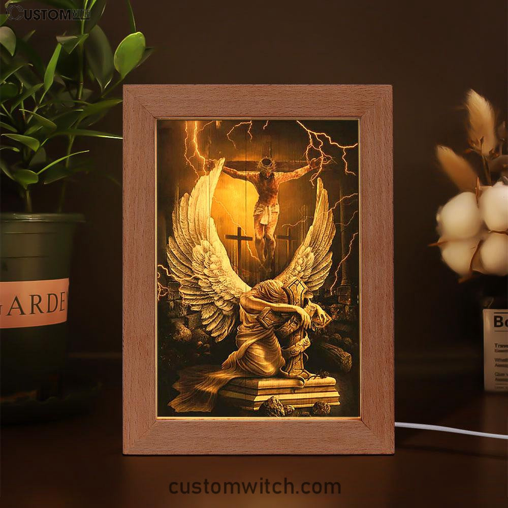 Stunning Angel Wings Jesus On The Cross Frame Lamp Print - Inspirational Frame Lamp Art - Christian Art Home Decor
