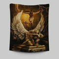 Stunning Angel Wings Jesus On The Cross Tapestry Print - Inspirational Tapestry Art - Christian Wall Art Home Decor